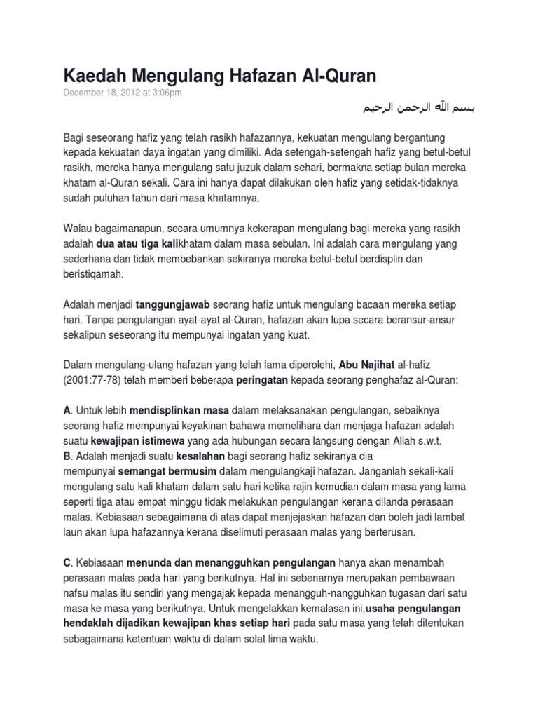 Kaedah Mengulang Hafazan Al Quran Pdf